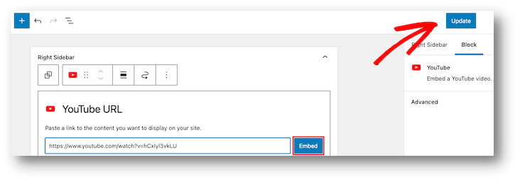 WordPress will retrieve the embed code and show the YouTube video in the content editor as soon as you paste the video URL. By selecting “Update” or “Publish,” you can now save your post and view the embedded video in the live post.