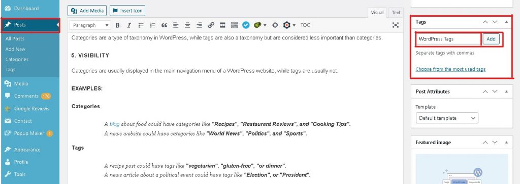 Note: If you want to add more tags, simply repeat the process and add more tags to the post.