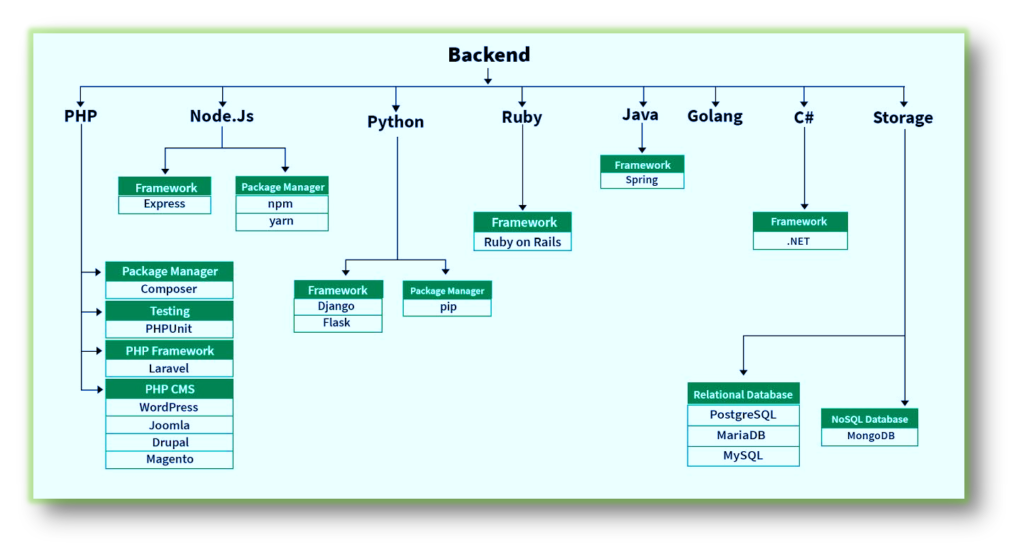 The server that the website is hosted on, the program that manages the site, and the database that hosts the site’s data make up the back end. Since servers can be set up to read practically any language, developers can utilize a wide range of programming languages for back-end development.