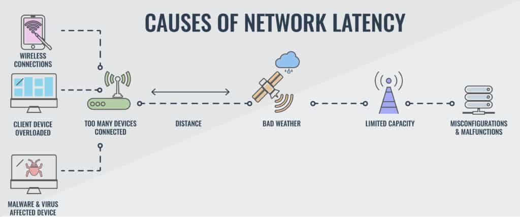 Additionally, if there are any hardware issues or software issues with the network, the latency can increase dramatically. When using wireless networks, signal strength can also affect latency.